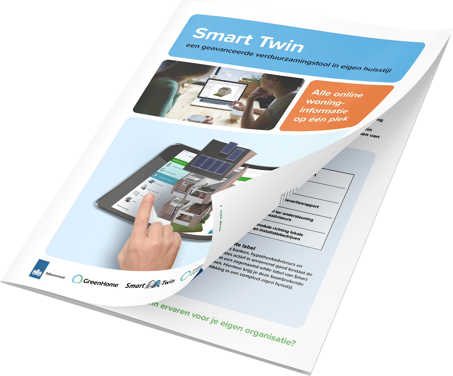 van hun eigen woning kan Smart Twin een op maat gemaakt magazine creëren voor iedere woning in Nederland. Hierin vinden bewoners, prospects of bestaande klanten uitgebreide informatie over hun eigen woning, advies over de meest relevante verduurzamingsmogelijkheden, achtergrondinformatie en interessante extra’s. Door Smart Twin zowel online als offline in te zetten, bied je de optimale communicatiemix om je doelgroep op verschillende manieren te bereiken en te activeren.