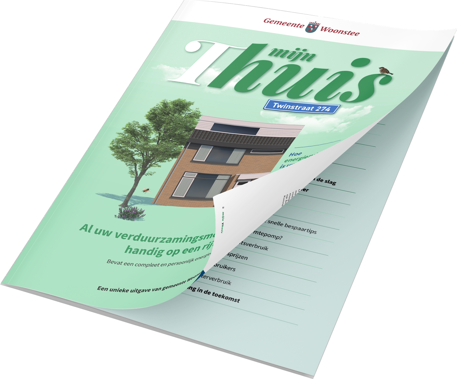 Als gemeente wil je bewoners zo goed mogelijk informeren over de verduurzamingsmogelijkheden in hun eigen woning. Met Smart Twin kun je een geheel op maat gemaakt magazine versturen naar alle wijkbewoners. Hierin vinden zij specifieke informatie over hun eigen woning, persoonlijk advies over relevante verduurzamingsmogelijkheden, achtergrondinformatie en interessante extra’s.